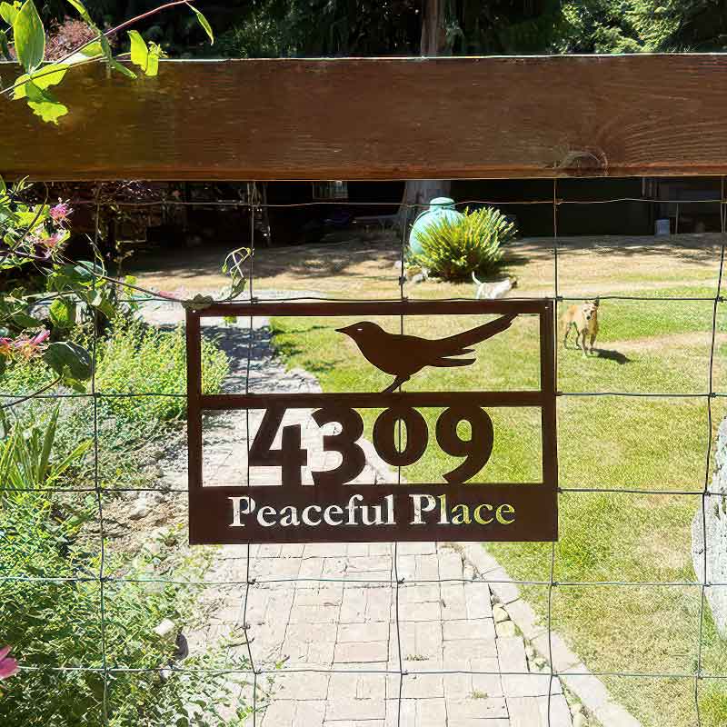 Bring timeless charm and durability to your entryway with this custom Corten steel address sign, designed to gracefully weather into a warm, rustic patina. Cut from premium A242 Corten steel, this sign blends natural beauty with long-lasting strength—perfect for gardens, fences, or front gates. Three sizes available. If you’d like another size, please contact us for a quote.