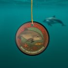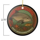 Enjoy the quiet magic beneath Puget Sound’s surface with this vintage-style Harbor Porpoise ornament. Illustrated in an Arts & Crafts–inspired style, it features a harbor porpoise gliding through green coastal waters alongside native underwater life, all contained within a classic circular design.