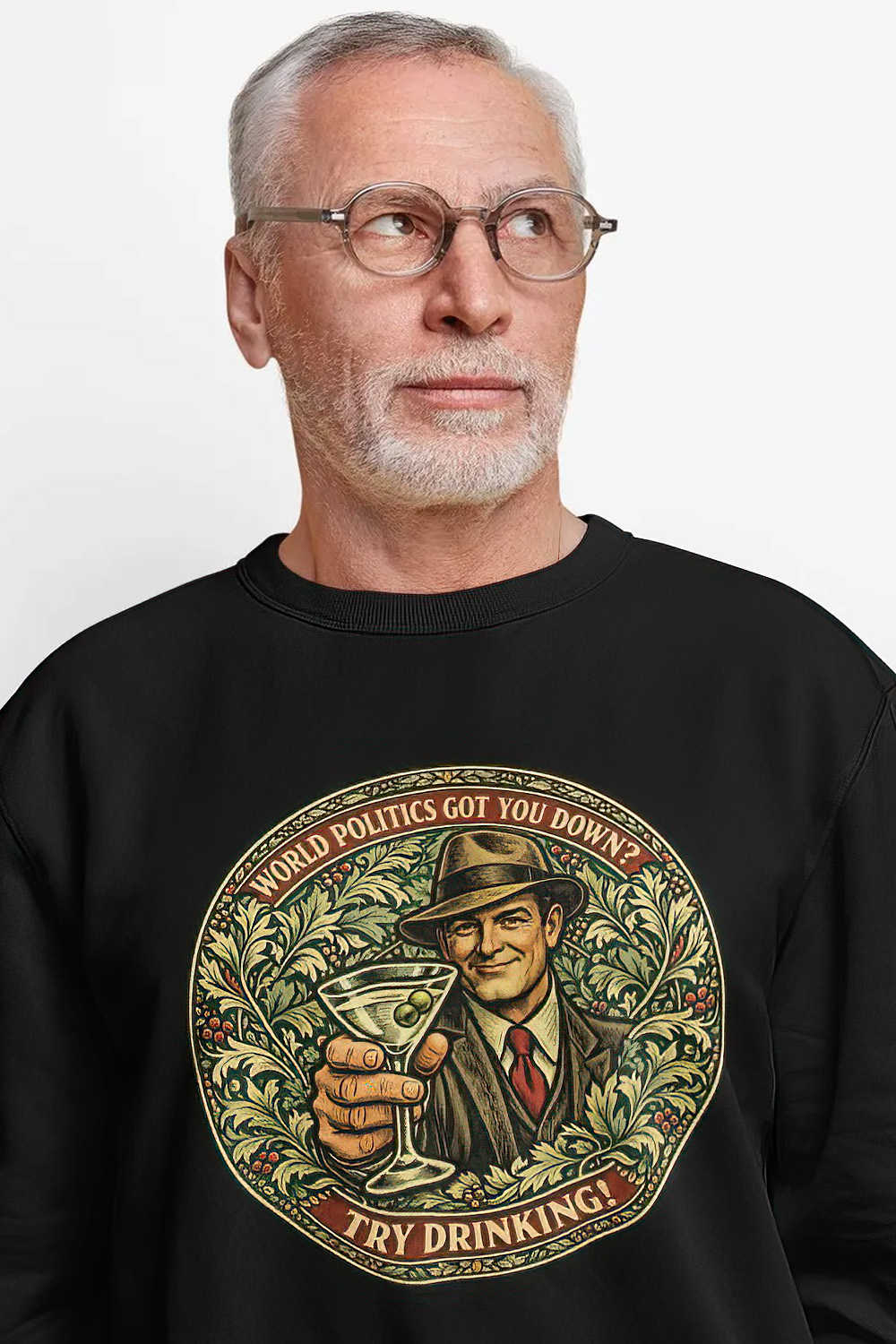 Whether you’re doom-scrolling, arguing with the TV, or just trying to survive another election year, this sweatshirt says what we’re all thinking—only with better typography.